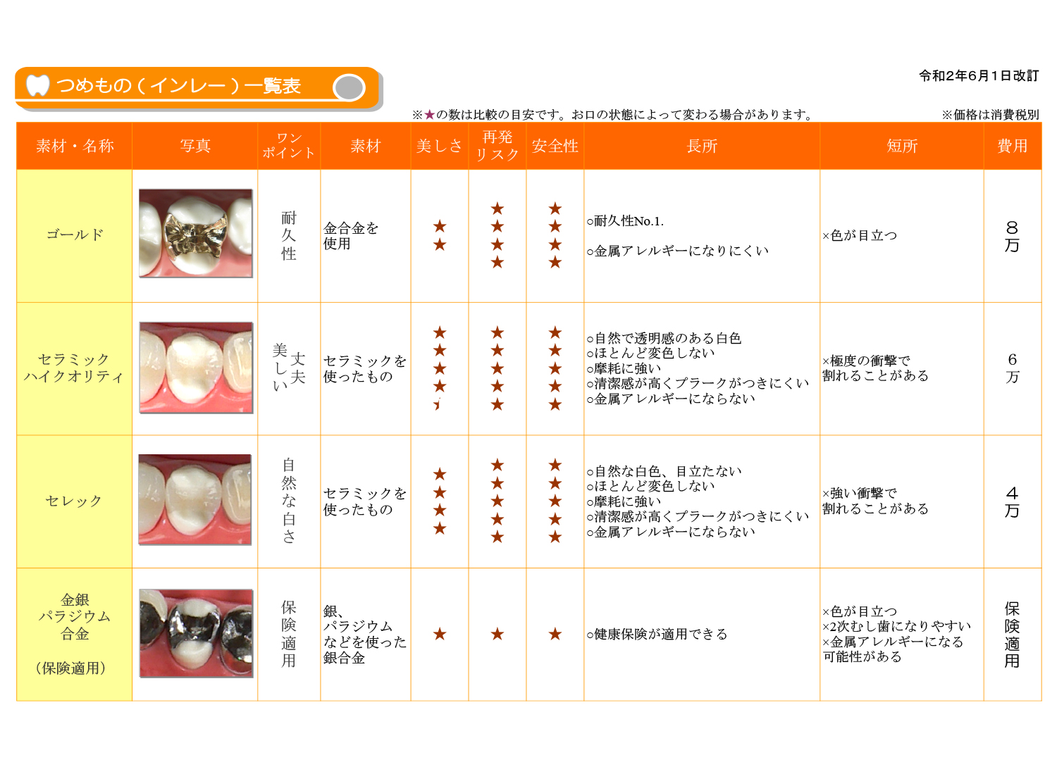 治療料金表